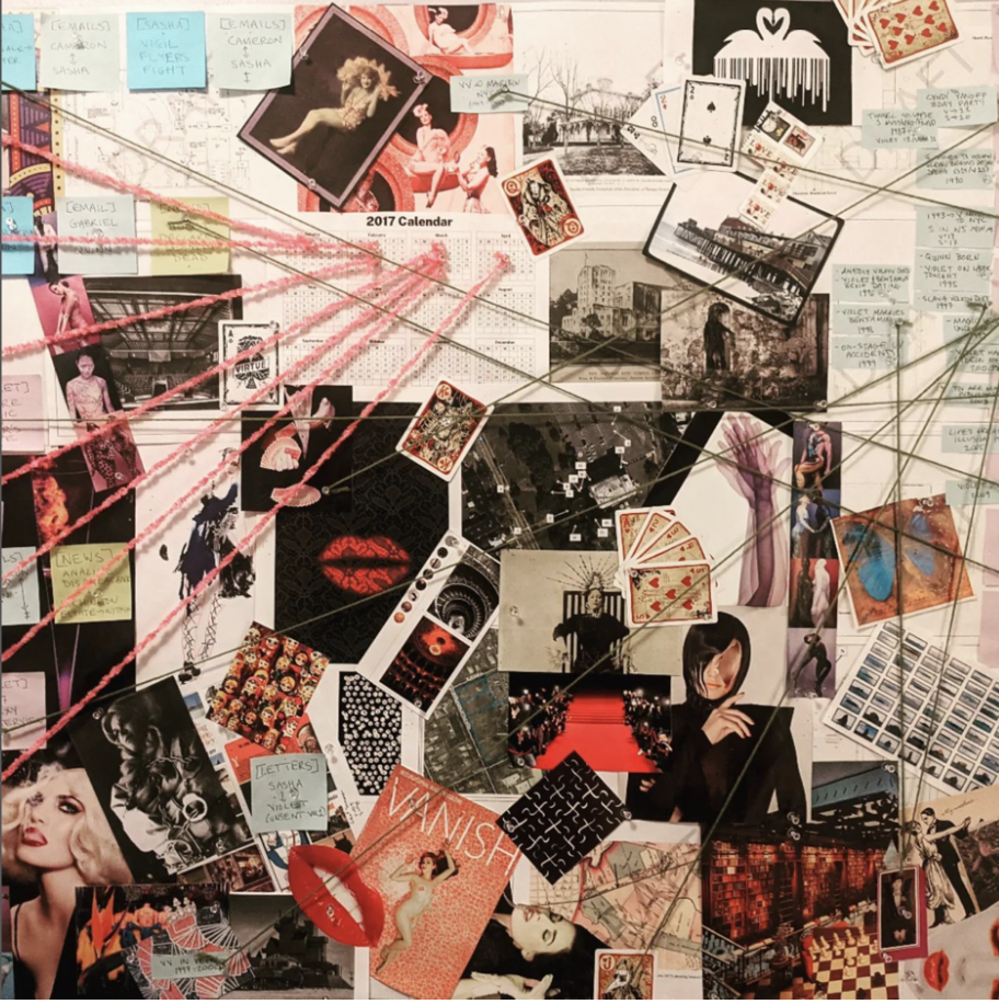 Montimore: My plotting happens more instinctually, so while Sasha’s chapters flowed, for the most part, chronologically, I wrote some of the other media elements as they came to me. There was definitely some rearranging of articles and podcast episodes. I even had a giant “crazy wall” in my office to inspire me and help me keep track of the different sections and timelines as I went along. Here’s a peek at part of it!